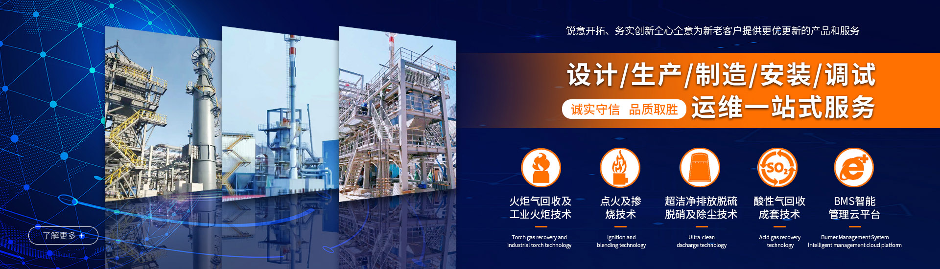 超低氮燃燒技術、 富氧純氧燃燒工程技術、 廢液廢氣焚燒工程技術、 工業(yè)廢氣VOCs綜合治理技術、 火炬氣回收及工業(yè)火炬技術、 點火及摻燒技術、